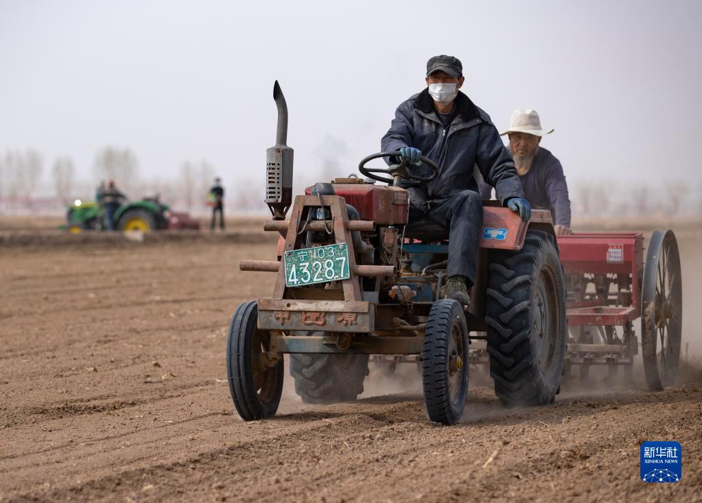 时下正值春耕备耕时节,宁夏吴忠市同心县的农民抢抓农时,播种小麦。据了解,今年同心县春小麦种植面积预计在6万亩以上。同心县通过加强技术指导服务、调整种植结构、强化农资市场监管等方式,认真落实耕地保护目标责任制,保障粮食和重要农产品生产供给。