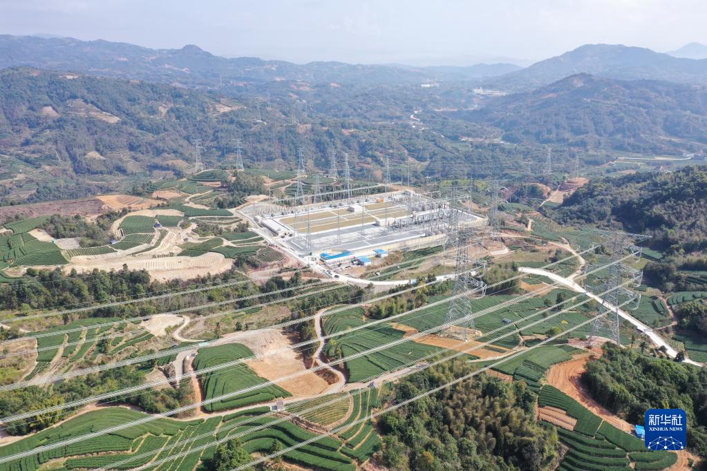 3月12日拍摄的福建棠园(福鼎)500千伏输变电工程项目现场(无人机照片)。