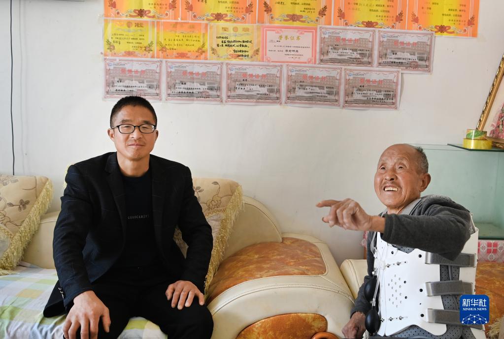 3月12日,王新富(左)家的客厅里,贴满了女儿的奖状。