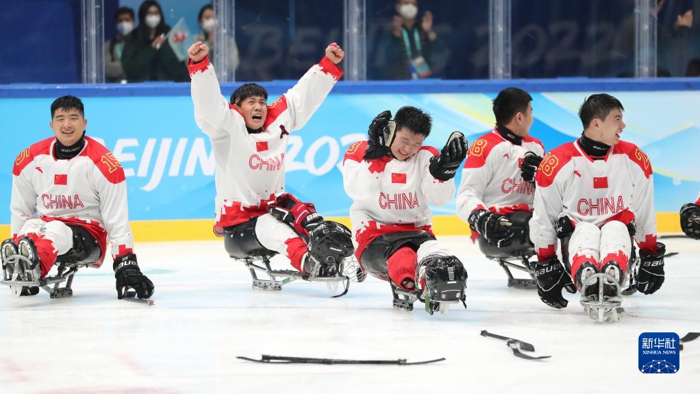 当日,在北京国家体育馆举行的北京2022冬残奥会残奥冰球铜牌赛中,中国队以4比0战胜韩国队获得铜牌。新华社记者 马希平 摄
