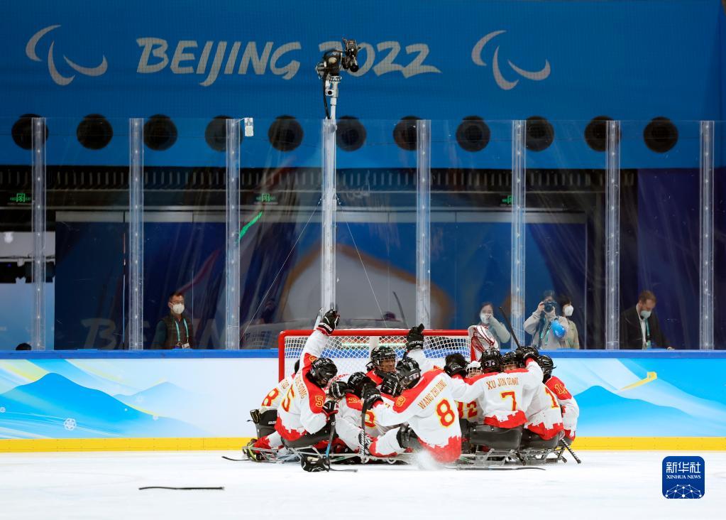 当日,在北京国家体育馆举行的北京2022冬残奥会残奥冰球铜牌赛中,中国队以4比0战胜韩国队获得铜牌。新华社记者 兰红光 摄