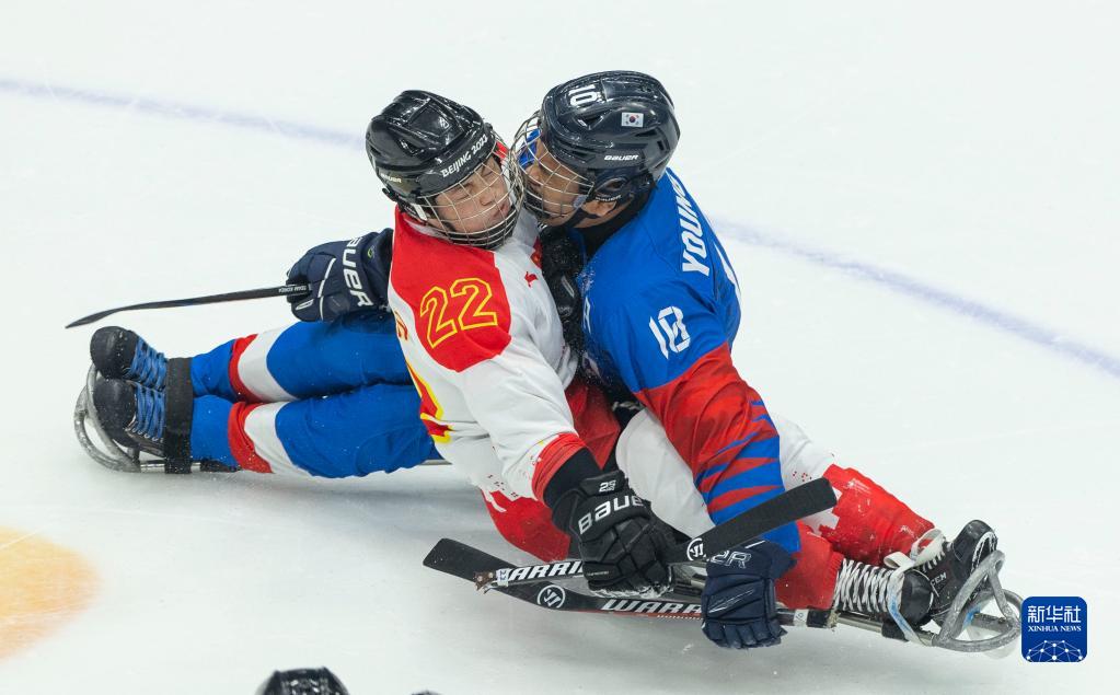 当日,在北京国家体育馆举行的北京2022年冬残奥会残奥冰球铜牌赛中,中国队以4比0战胜韩国队获得铜牌。新华社记者 才扬 摄