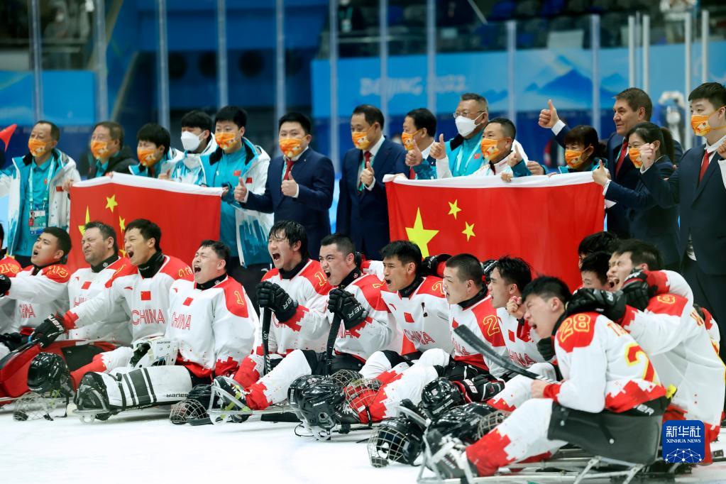 当日,在北京国家体育馆举行的北京2022冬残奥会残奥冰球铜牌赛中,中国队以4比0战胜韩国队获得铜牌。新华社记者 兰红光 摄