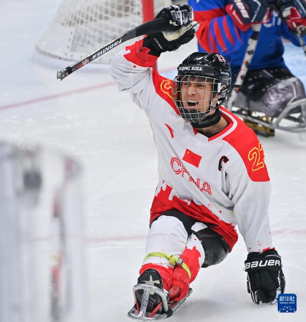当日,在北京国家体育馆举行的北京2022冬残奥会残奥冰球铜牌赛中,中国队以4比0战胜韩国队获得铜牌。新华社记者 邬惠我 摄
