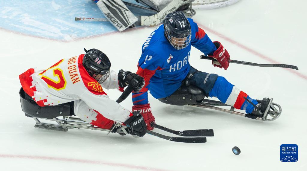 当日,在北京国家体育馆举行的北京2022年冬残奥会残奥冰球铜牌赛中,中国队以4比0战胜韩国队获得铜牌。新华社记者 才扬 摄