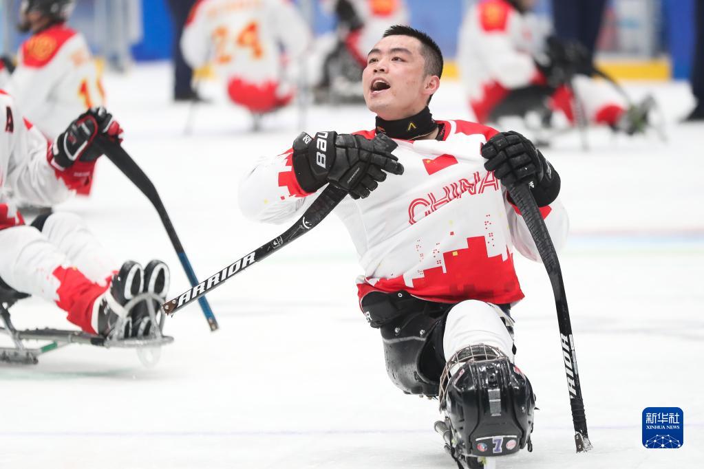 当日,在北京国家体育馆举行的北京2022冬残奥会残奥冰球铜牌赛中,中国队以4比0战胜韩国队获得铜牌。新华社记者 马希平 摄
