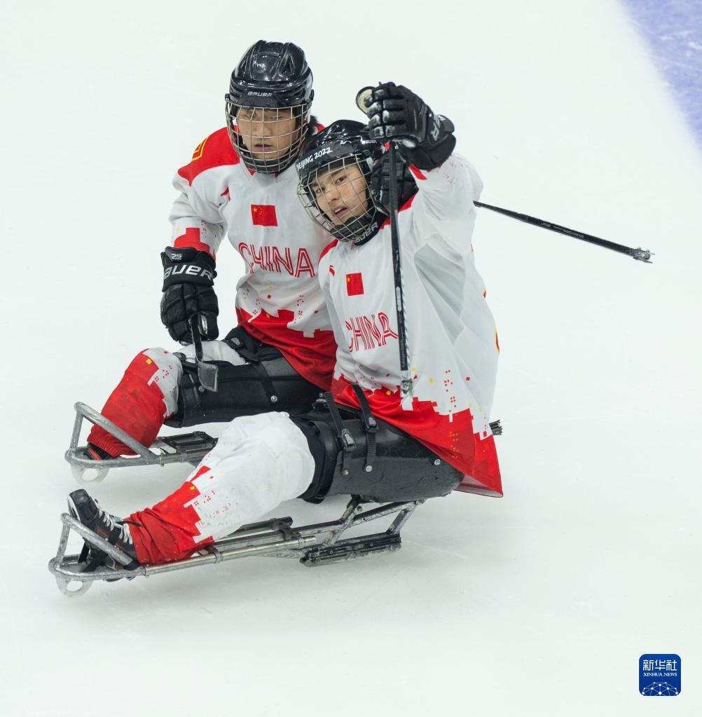 当日,在北京国家体育馆举行的北京2022年冬残奥会残奥冰球铜牌赛中,中国队以4比0战胜韩国队获得铜牌。新华社记者 才扬 摄
