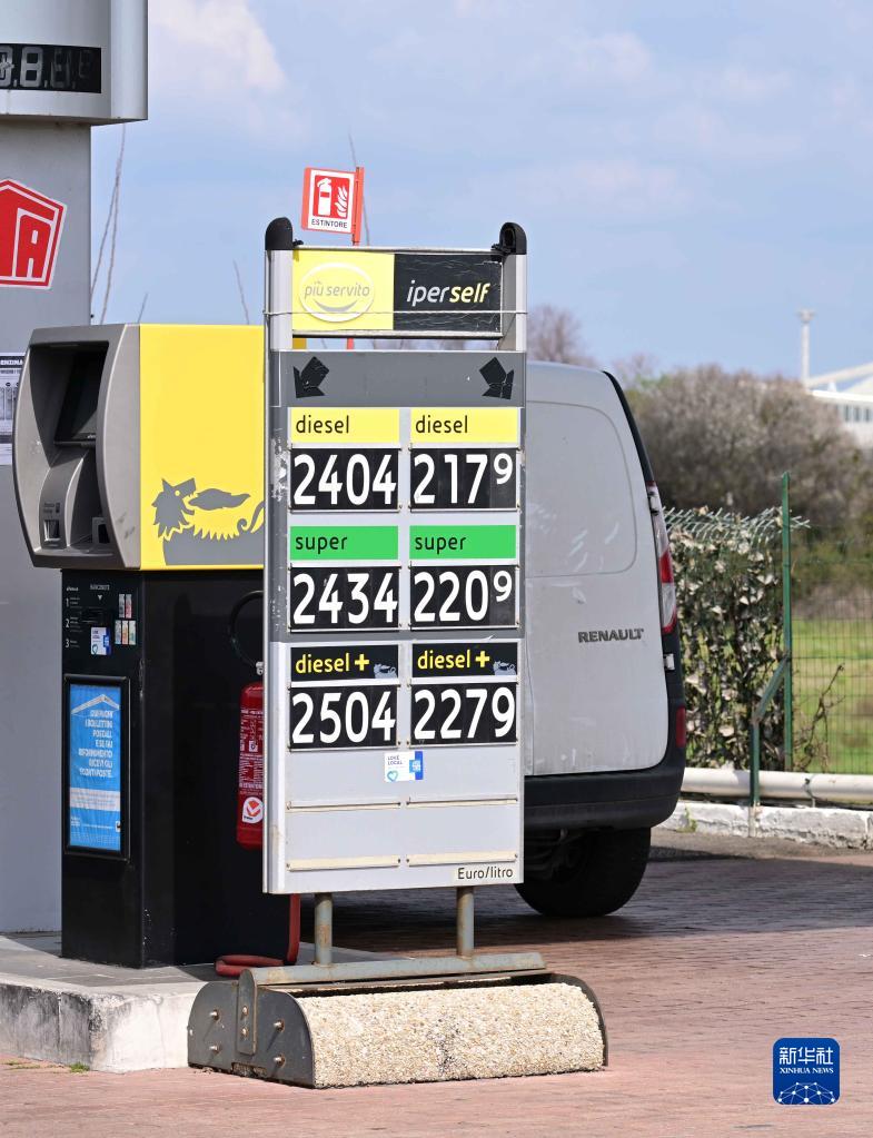 这是3月11日在意大利罗马一处加油站拍摄的油价牌。