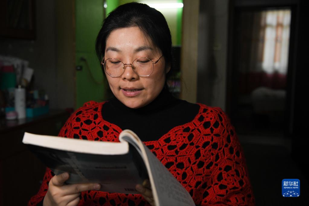 3月12日,马琼在家中进行普通话训练。