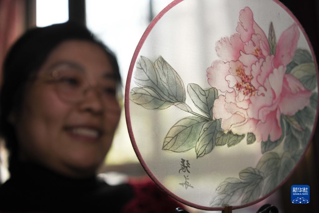 3月12日,马琼在家中展示残疾人朋友送她的手工艺品。