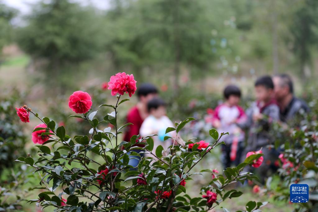 3月13日,人们在贵州省铜仁市玉屏侗族自治县亚鱼乡茶花培育基地游玩。