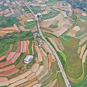 春回大地,广西南宁市邕宁区蒲庙镇纵横交错的田地色彩斑斓,宛如色彩丰富的调色板(3月13日摄,无人机照片)。