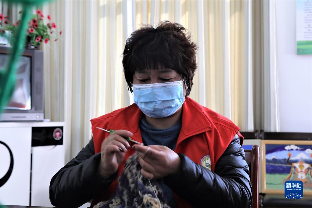 在社区“石榴籽家园”,蒲兴花给辖区内的各族妇女讲授示范钩织技艺(3月9日摄)。