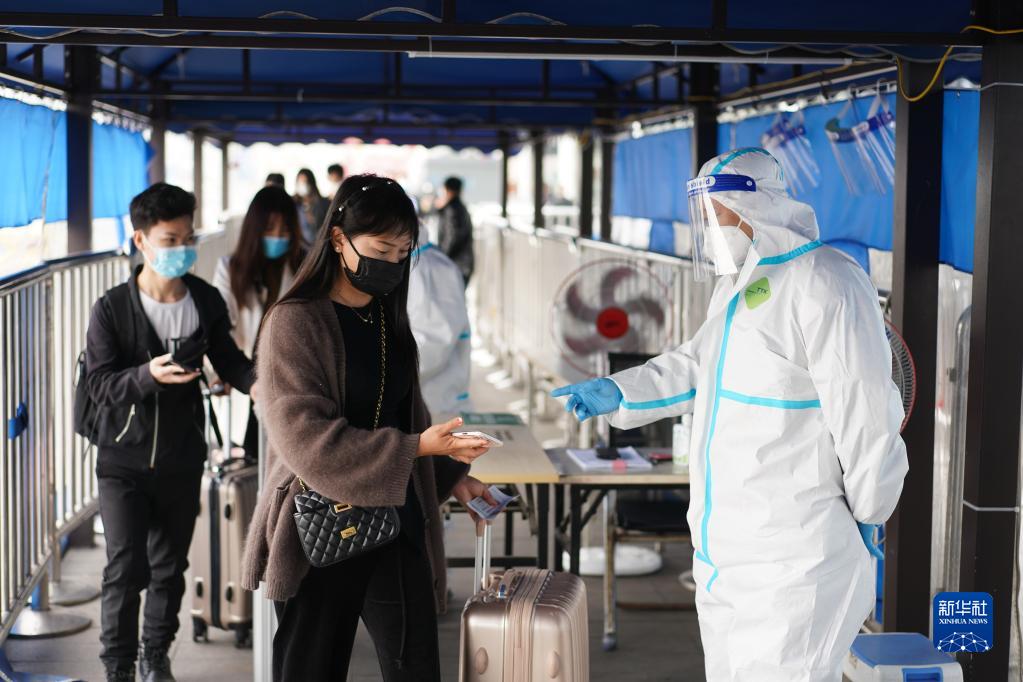 3月14日,旅客在南京火车站接受查验。