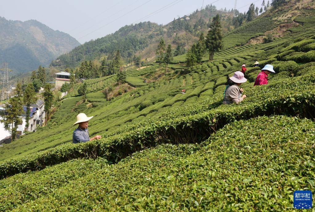 3月14日,湖北省恩施市芭蕉侗族乡戽口村茶农采摘春茶。