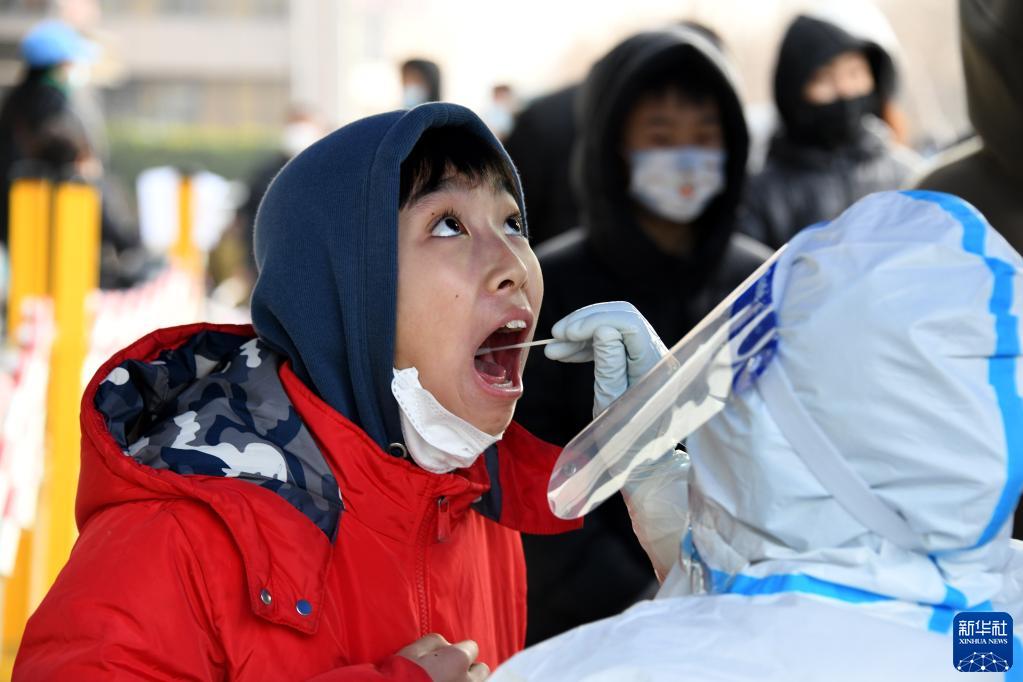 3月15日,市民在青岛市市北区一个核酸检测点接受核酸采样。