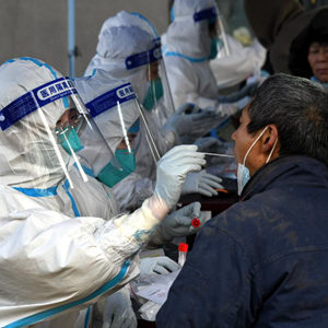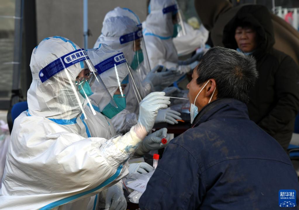 3月15日,青岛市市北区一个核酸检测点在对流动人口进行核酸采样,做到“应检尽检”“愿检尽检”。