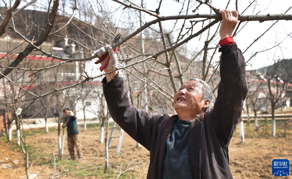 3月15日,麻坪镇云蒙山村村民在大樱桃园为樱桃树修枝。麻坪镇利用自然生态条件好、光照时间长、昼夜温差大的有利条件,发展大樱桃800亩,带动农户增收。