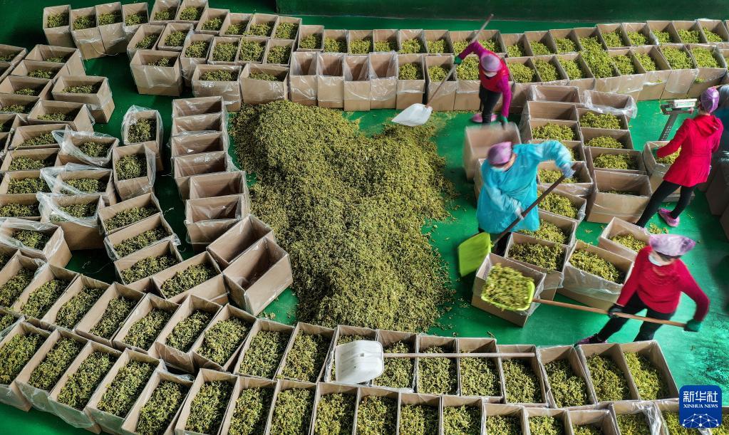 3月15日,麻坪镇的一家农副产品加工企业的员工在包装脱水蔬菜。该镇大力发展高山蔬菜种植,积极延伸产业链,形成集种植基地、生产、加工、销售为一体的高标准、高规格的农特产业。