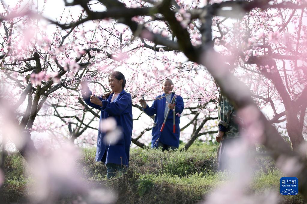 3月15日,村民在贵州省铜仁市玉屏侗族自治县朱家场镇混寨村果园里劳作。