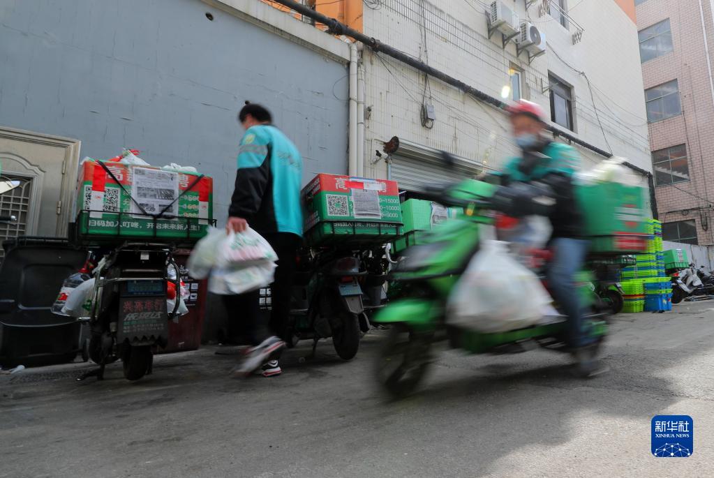 由于疫情防控需要,近日上海有不少小区临时封控,食品和生活必需品供应成了封闭小区内居民最关心的问题,网上买菜配送也成了居民们的首选。网络购物平台企业开足马力保证正常配送业务高效完成,同时兼顾疫情防控要求按时进行工作人员核酸检测。在上海城市疫情防控工作紧张进行的背后,是众多劳动者们的默默付出。