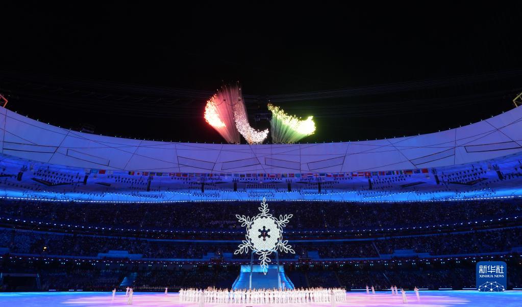 在北京2022年冬残奥会开幕式上,焰火绽放在北京国家体育场上空(2022年3月4日摄)。