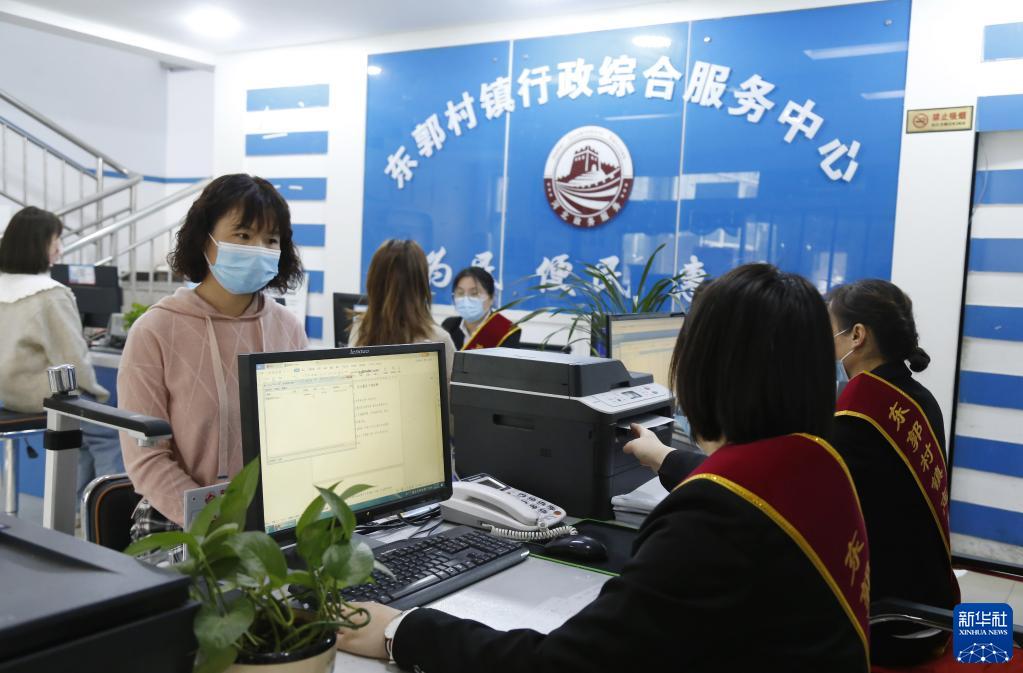 3月16日,群众在邢台市东郭村镇行政综合服务中心办理业务。