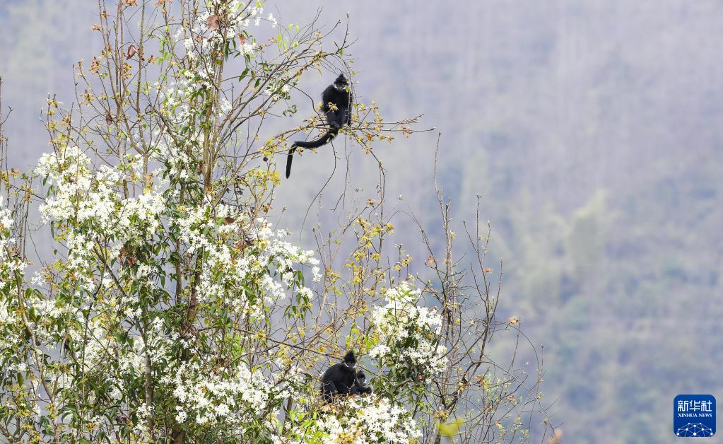 3月16日在贵州麻阳河国家级自然保护区拍摄的黑叶猴。