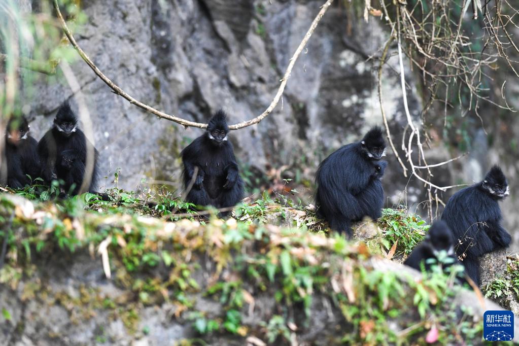 3月16日在贵州麻阳河国家级自然保护区拍摄的黑叶猴。