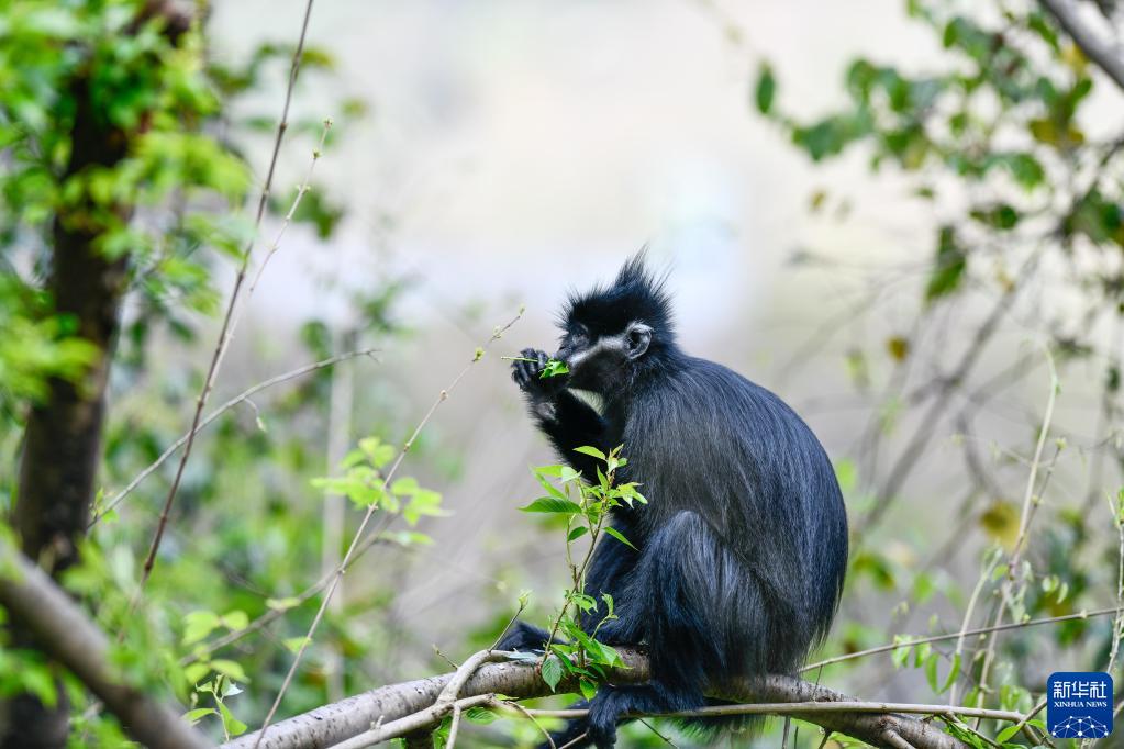 3月15日,在贵州麻阳河国家级自然保护区,黑叶猴在觅食。
