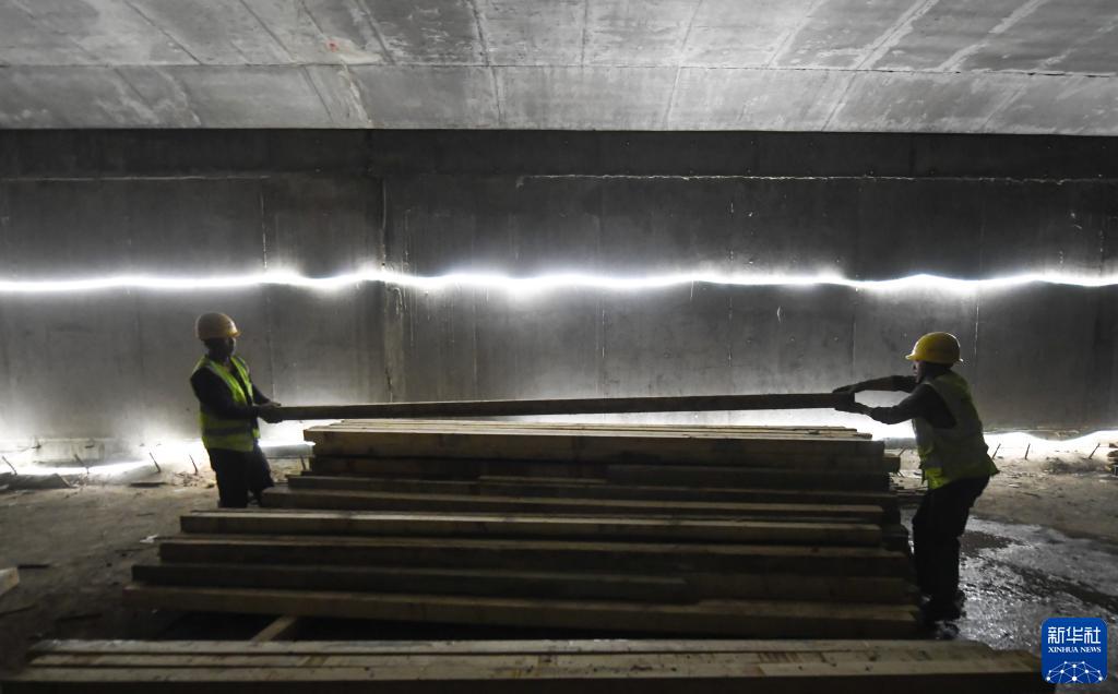 3月16日,工人在武汉市武昌滨江核心区地下空间环路工程工地施工。