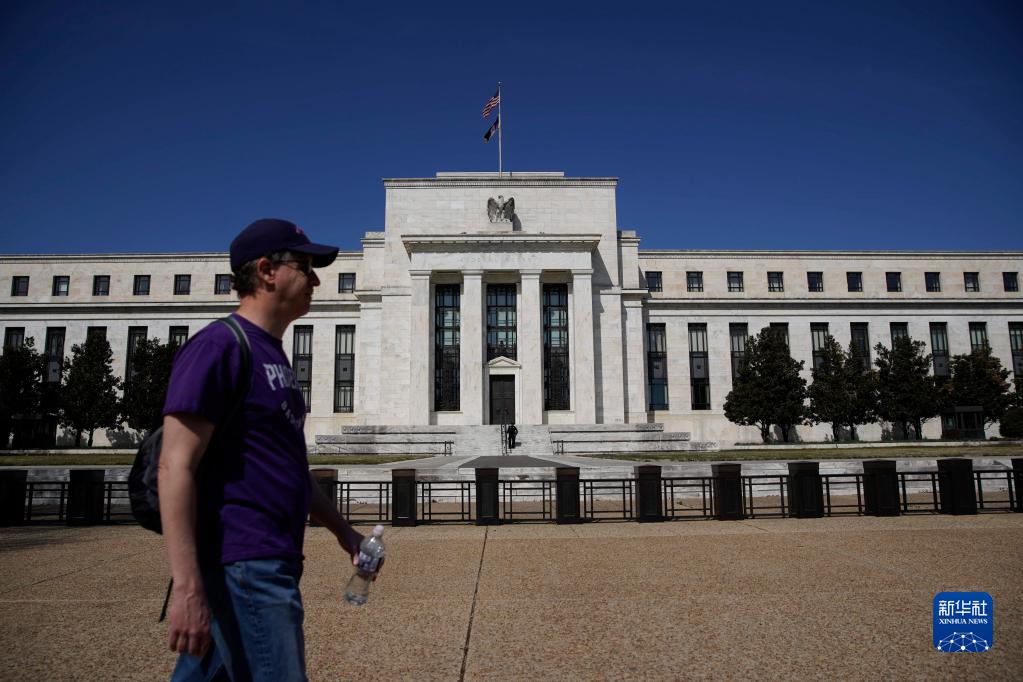3月16日,在美国首都华盛顿,一名男子从美联储大楼前走过。