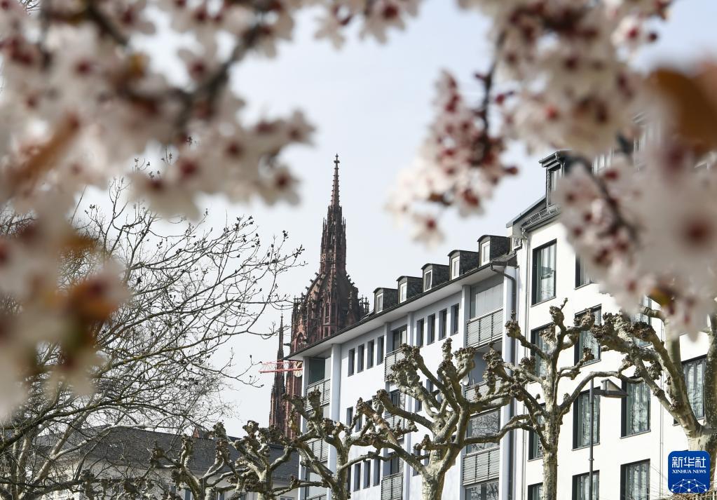 近日,德国法兰克福市气温逐渐回暖,美因河畔的鲜花次第开放。