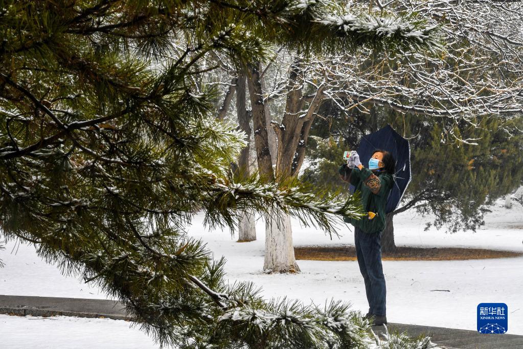 当日,受强冷空气影响,内蒙古呼和浩特市气温骤降,迎来一场春雪。