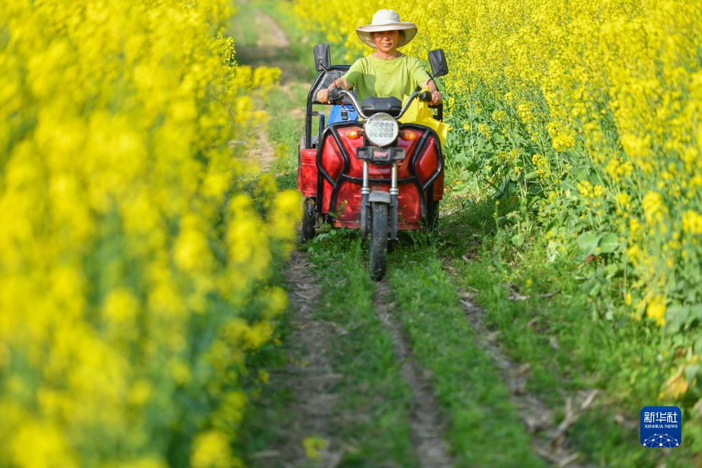 在常德市石门县叶家坪村,叶金娥骑着三轮车装着工具准备去劳作(3月15日摄)。