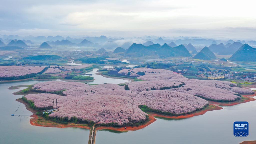 近日,贵州省贵安新区樱花园内樱花竞相盛开,吸引不少游客前来观赏。贵安新区樱花园占地面积2.4万余亩,园内种植近70万株樱花。