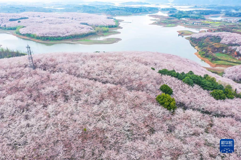 近日,贵州省贵安新区樱花园内樱花竞相盛开,吸引不少游客前来观赏。贵安新区樱花园占地面积2.4万余亩,园内种植近70万株樱花。