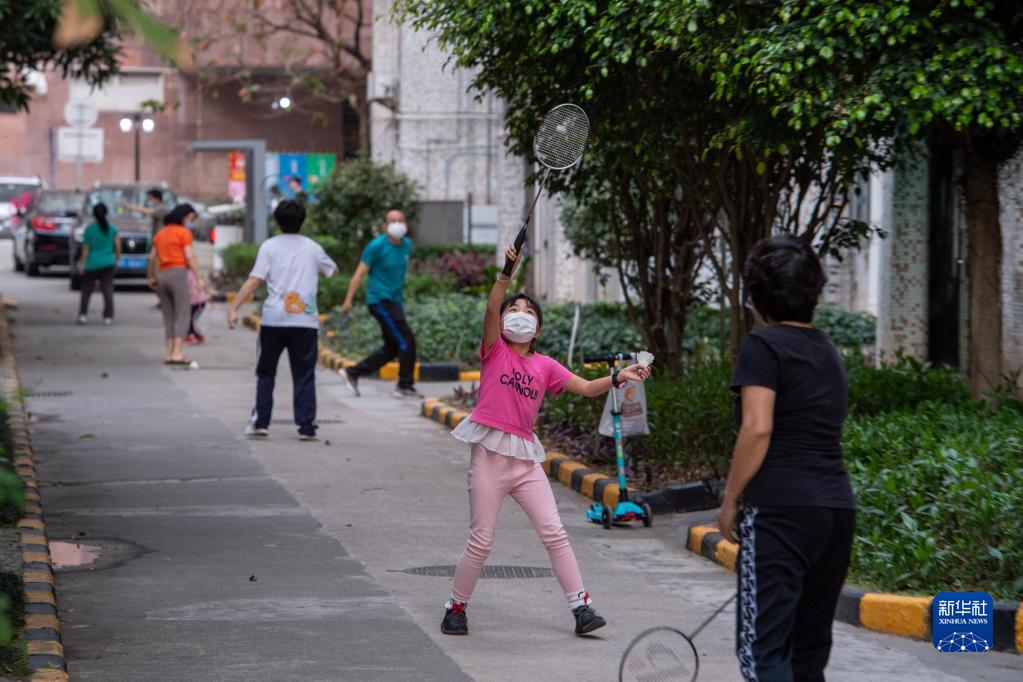 3月16日,深圳市福田区明月花园小区的居民在楼下健身。