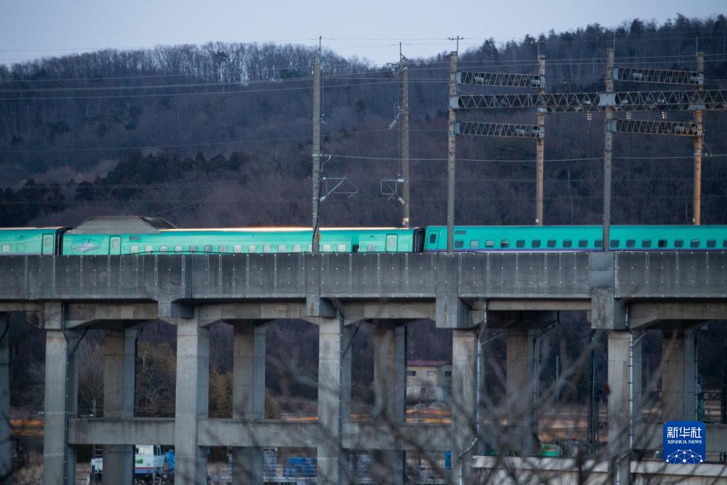 这是3月17日在日本宫城县白石市拍摄的因地震脱轨的东北新干线列车。