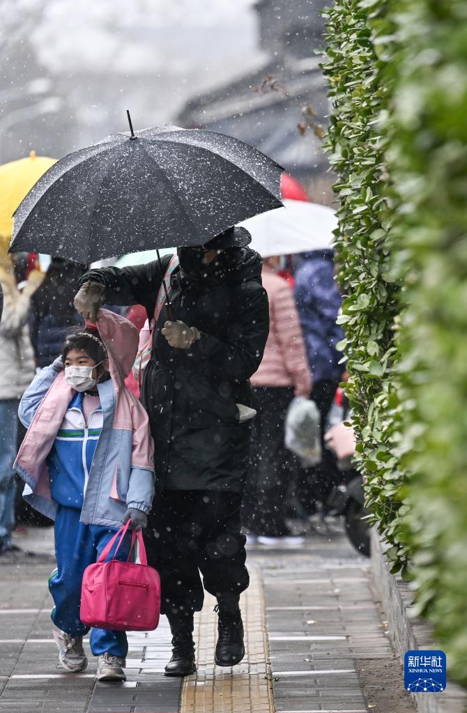 3月17日,在北京市西城区一所小学外,家长接孩子放学。