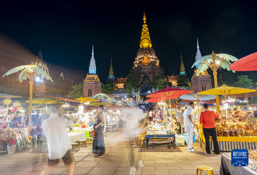 近年来,云南省西双版纳傣族自治州大力发展夜间经济,激发文化旅游消费潜力。每当夜幕降临,位于西双版纳景洪市告庄西双景的星光夜市便热闹起来,民族文化、傣味美食和特色手工艺品等吸引众多游客。2021年,文化和旅游部公布了第一批国家级夜间文化和旅游消费集聚区名单,告庄西双景入选其中。