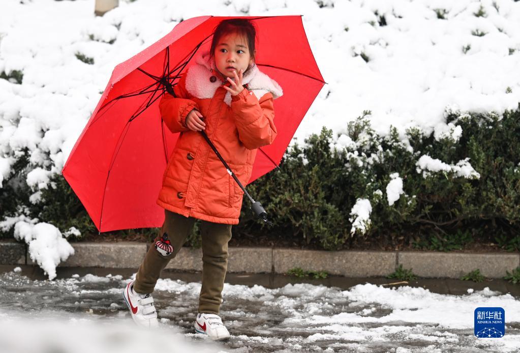 3月18日,小女孩在北京玉渊潭公园赏雪。