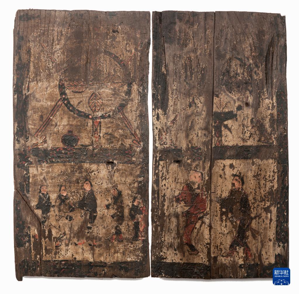 湖北云梦县郑家湖战国秦汉墓地的一处板门绘画(资料图)。
