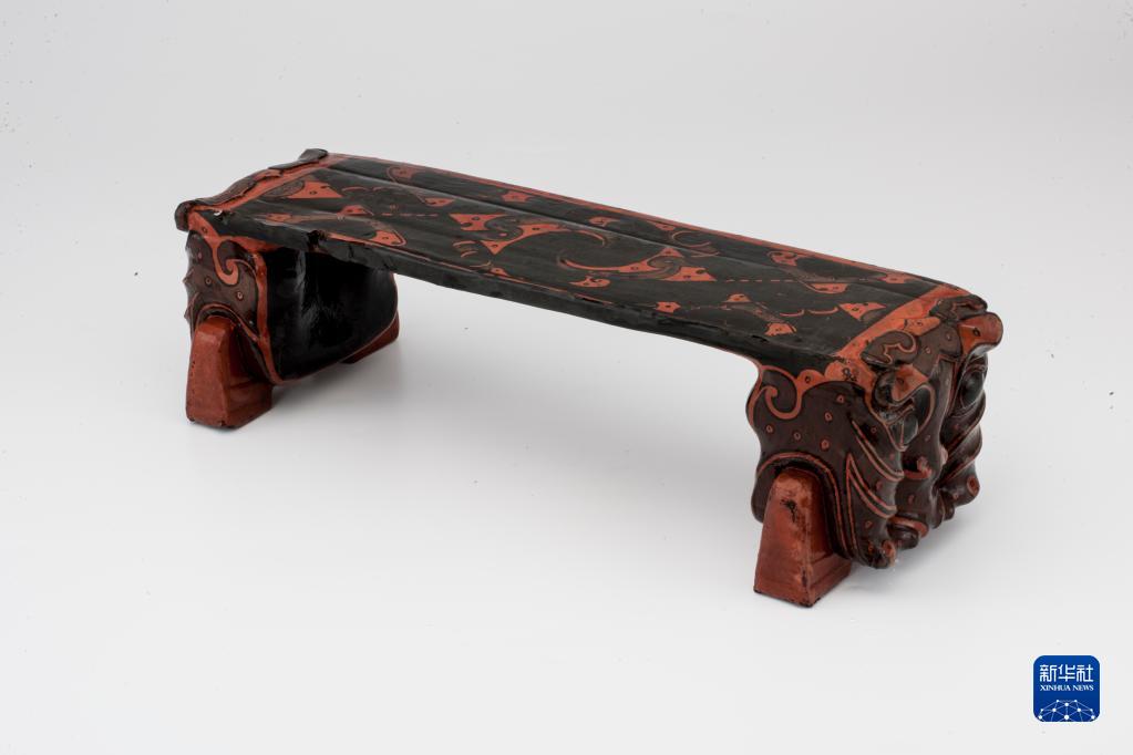湖北云梦县郑家湖战国秦汉墓地出土漆木虎头枕(资料图)。