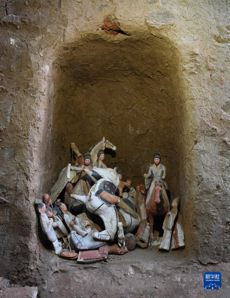 甘肃武威市唐代吐谷浑王族墓葬群慕容智墓墓道壁龛出土仪仗俑群(资料图)。