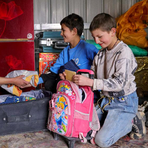在新疆塔什库尔干塔吉克自治县达布达尔乡热斯喀木村,村民为即将返校的孩子收拾行李(2月24日摄)。
