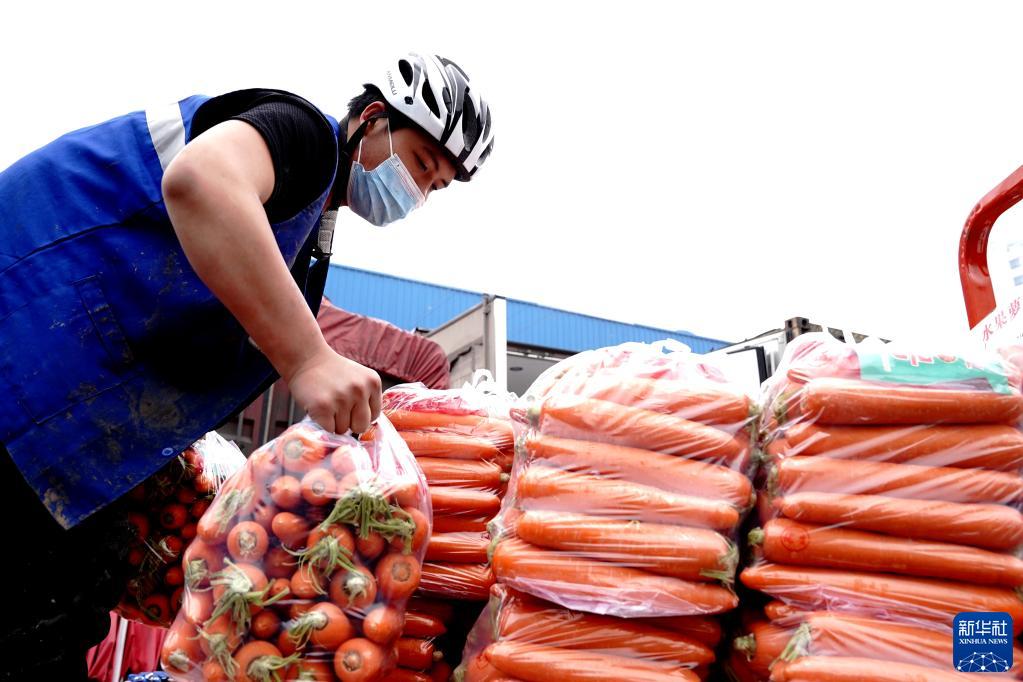 为加强疫情防控,确保上海市民买到安全、健康的蔬菜,上海最大的蔬菜批发市场——江桥批发市场对所有进入市场的车辆和人员严格执行防控管理措施;所有进入市场的蔬菜交易前,都需通过农药残留检测。据介绍,这里每天的蔬菜交易量约为6000至7000吨,可满足上海市民60%以上的蔬菜需求。
