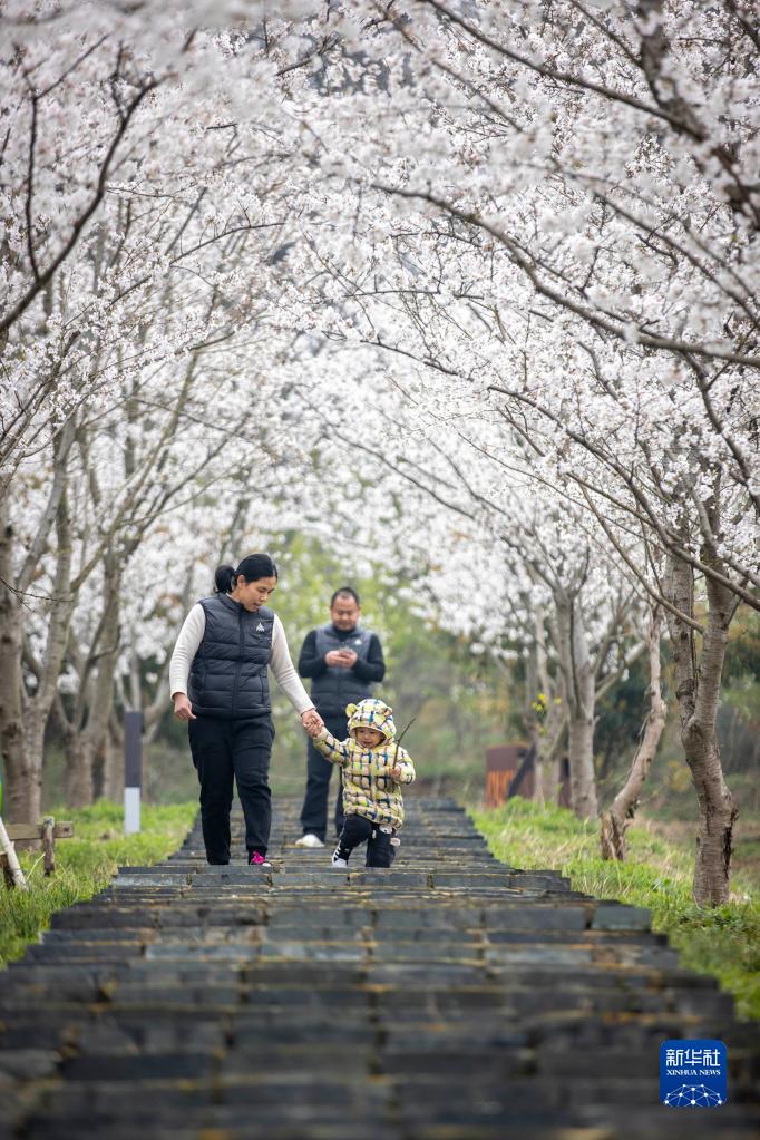 3月19日,市民在江苏省南京市六合区平山森林公园景区踏春赏樱。