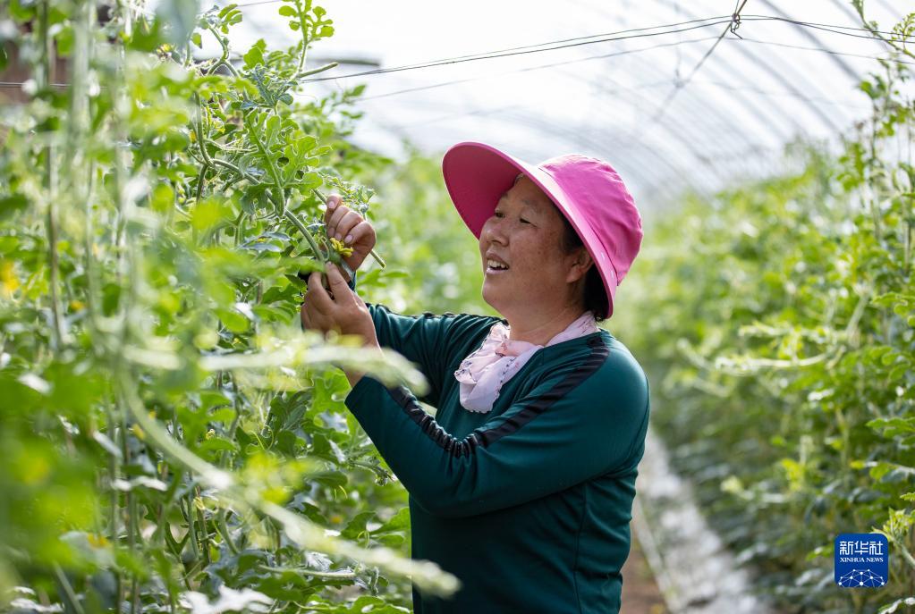 3月20日,农民在宁夏银川市贺兰县习岗镇新平设施农业园区瑞信果蔬农庄吊瓜温棚内进行人工授粉。