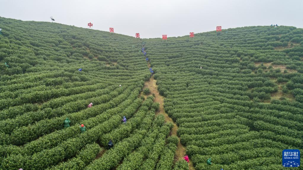 3月20日,在湖北省崇阳县青山镇的青岗白茶基地,工人在茶园里忙碌。